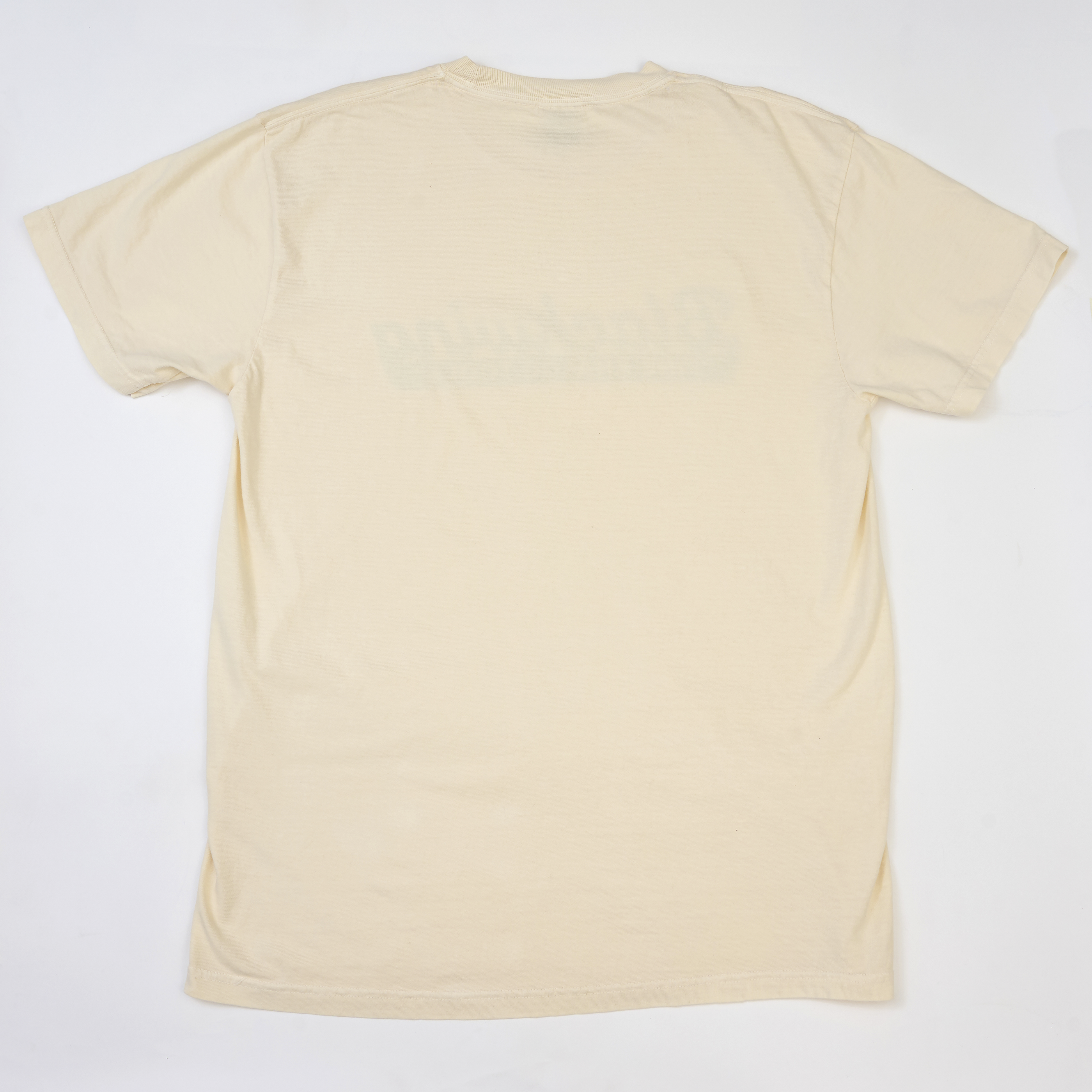 - Ivory color shirt printed on a garment dye Comfort Colors blank.