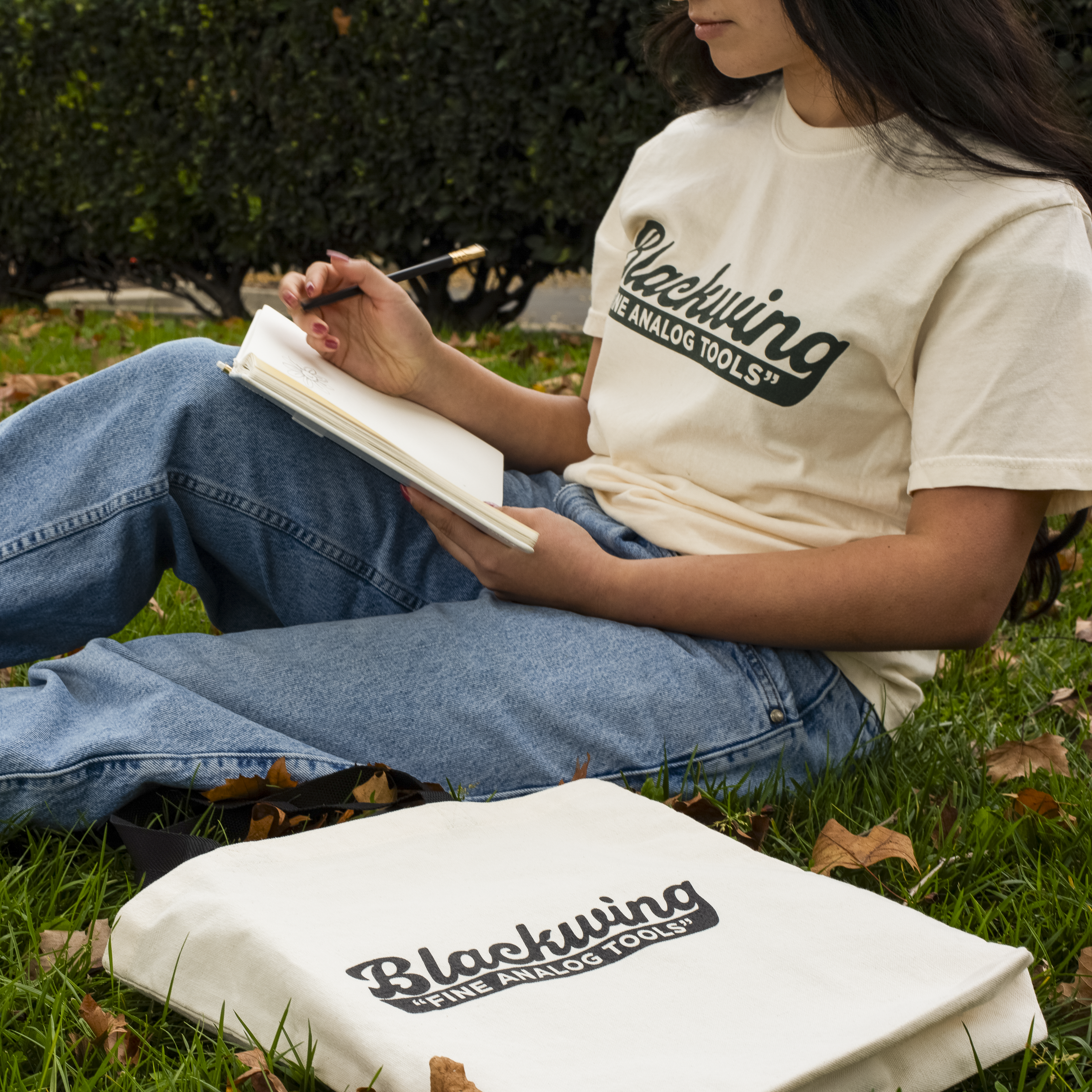 Celebrate high-quality tools and craftsmanship with our latest shirt. This relaxed fit tee features a heritage-inspired "Blackwing: Fine Analog Tools" graphic on the front.